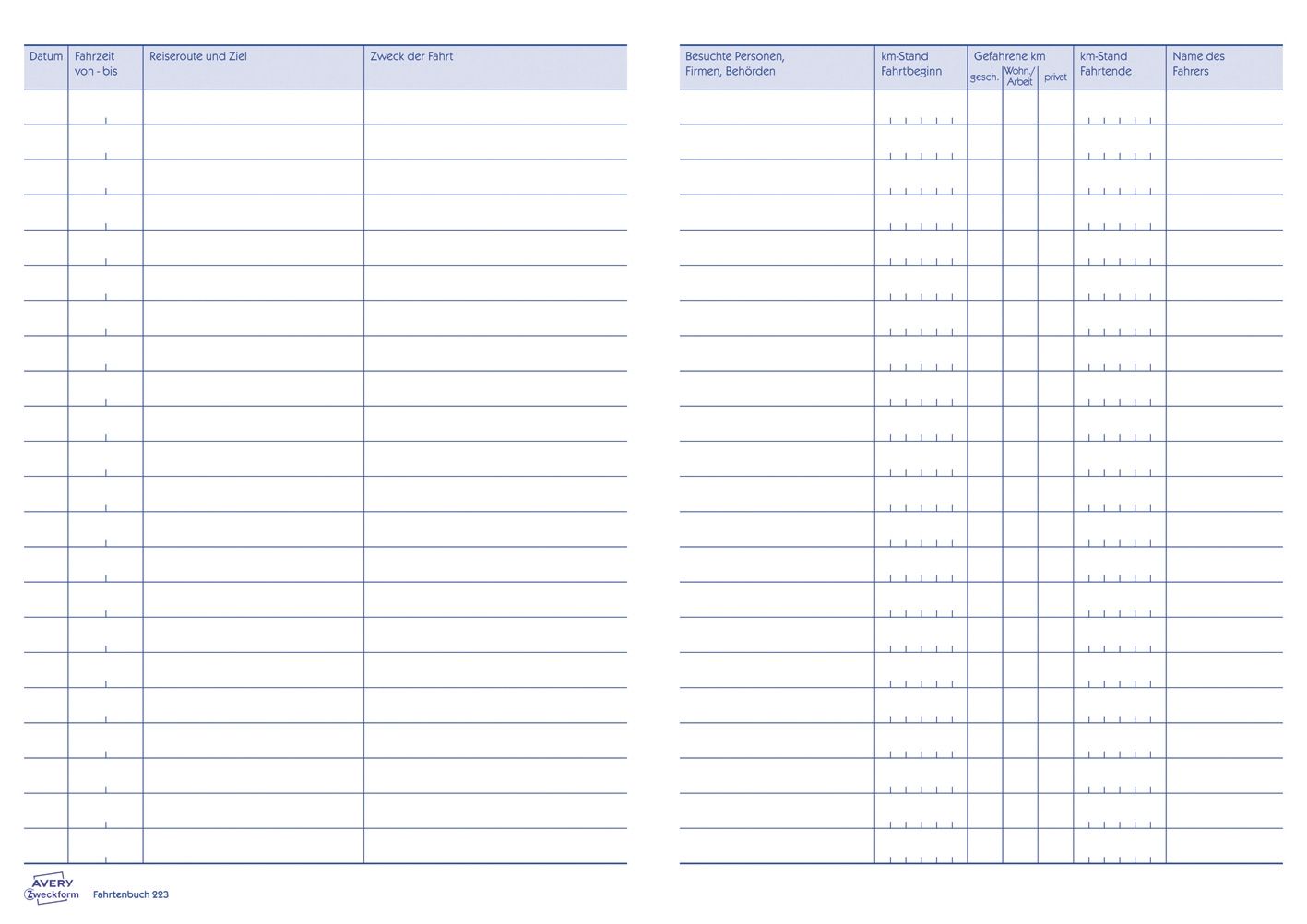 Weiterführende Links zu "AVERY ZWECKFORM Fahrtenbuch A5/40BL 223"