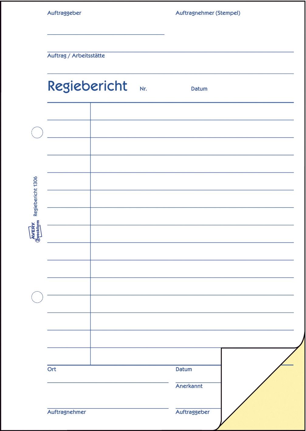 Die Bauformulare von Avery Zweckform sind unverzichtbare Helfer für Bau und Handwerk. Der Regiebericht eignet sich besonders, um die tägliche Arbeitsleistung und den Materialverbrauch zu dokumentieren. Der Regiebericht im DIN A5 Format beinhaltet 2 Blatt Blaupapier. Die Bauformulare von Avery Zweckform sind vorgelocht, für eine schnelle Ablage!