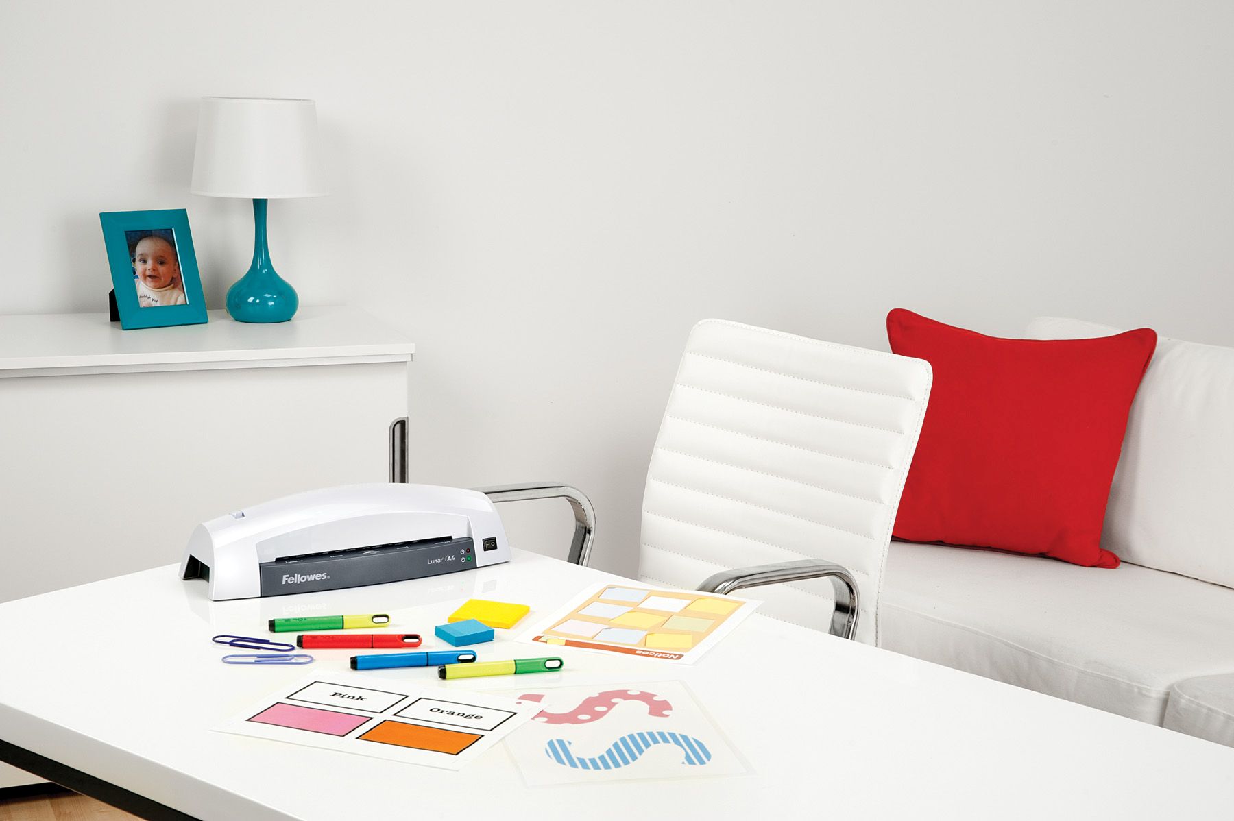 Laminiergerät Lunar A4. Verwendung für Papierformate: DIN A4. Art des Laminierverfahrens: heiß. Empf. Stärke der Folie: 80/125 µm. Erforderliche Dauer des Vorheizens: 4 min. Ausführung der Temperaturregelung: 1 Stufe. Laminiergeschwindigkeit: 300 mm/min. Geeignet für die gelegentliche Verwendung Zuhause - ideal für Bastelarbeiten, Auslösehebel zur Beseitigung schief eingelegter Folien. Masse (Gewicht): 1,12 kg. Farbe: weiß. Max. Breite des zugeführten Materials: 240 mm. Größe (B x H x T): 384 x 122 x 122 mm. Zertifikate und Zulassungen: GS-Prüfzeichen, CE.