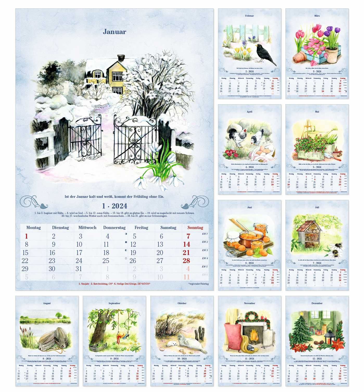 Hochwertiger Wandkalender, gedruckt auf Papier aus nachhaltiger Forstwirtschaft Hergestellt in Deutschland Premiumqualität: 150g, Bilderdruckpapier, extrastarke 1.000g, Rückwand Deutschsprachiges Kalendarium Feiertage (DE/AT/CH) Mit Platz für Notizen Auf den Rückseiten: Jahresübersichten aktuelles Jahr und Folgejahr, 100-jähriger Kalender, ein Pollenflugkalender und Ferientermine (DE/AT/CH) Mit Ringbindung zum Aufhängen und bequemen Umklappen Sie finden bei uns eine sehr große Auswahl an Bildkalendern im Format von 23,7x34 cm mit den unterschiedlichsten Motiven - da ist für jeden Geschmack etwas dabei! Dieser 100-jährige Kalender im Format von 23,7x34 cm mit liebevoll gestalteten Illustrationen versorgt Sie mit täglichen Wetterprognosen, Bauernregeln und vielem mehr. Begleitet werden die einzelnen Kalenderblätter von einer amüsanten Lebensweisheit rund um das Thema Wetter. Das übersichtliche Kalendarium unter den Fotomotiven liefert Monat für Monat viele Zusatzinformationen (z. B. Feiertage oder Mondphasen) und bietet sogar Platz für Notizen. Zudem finden Sie auf den Rückseiten der Kalenderblätter weitere Hilfsmittel, wie zum Beispiel einen Pollenflugkalender, Jahresübersichten und Ferientermine. Der Bildkalender 100-jähriger Kalender ist nicht nur eine sehr nützliche Hilfe im Alltag, sondern auch ein echter Blickfänger, der jeden Raum schmückt. Das Team der Neumann Verlage wünscht Ihnen viel Freude mit unseren Kalendern!