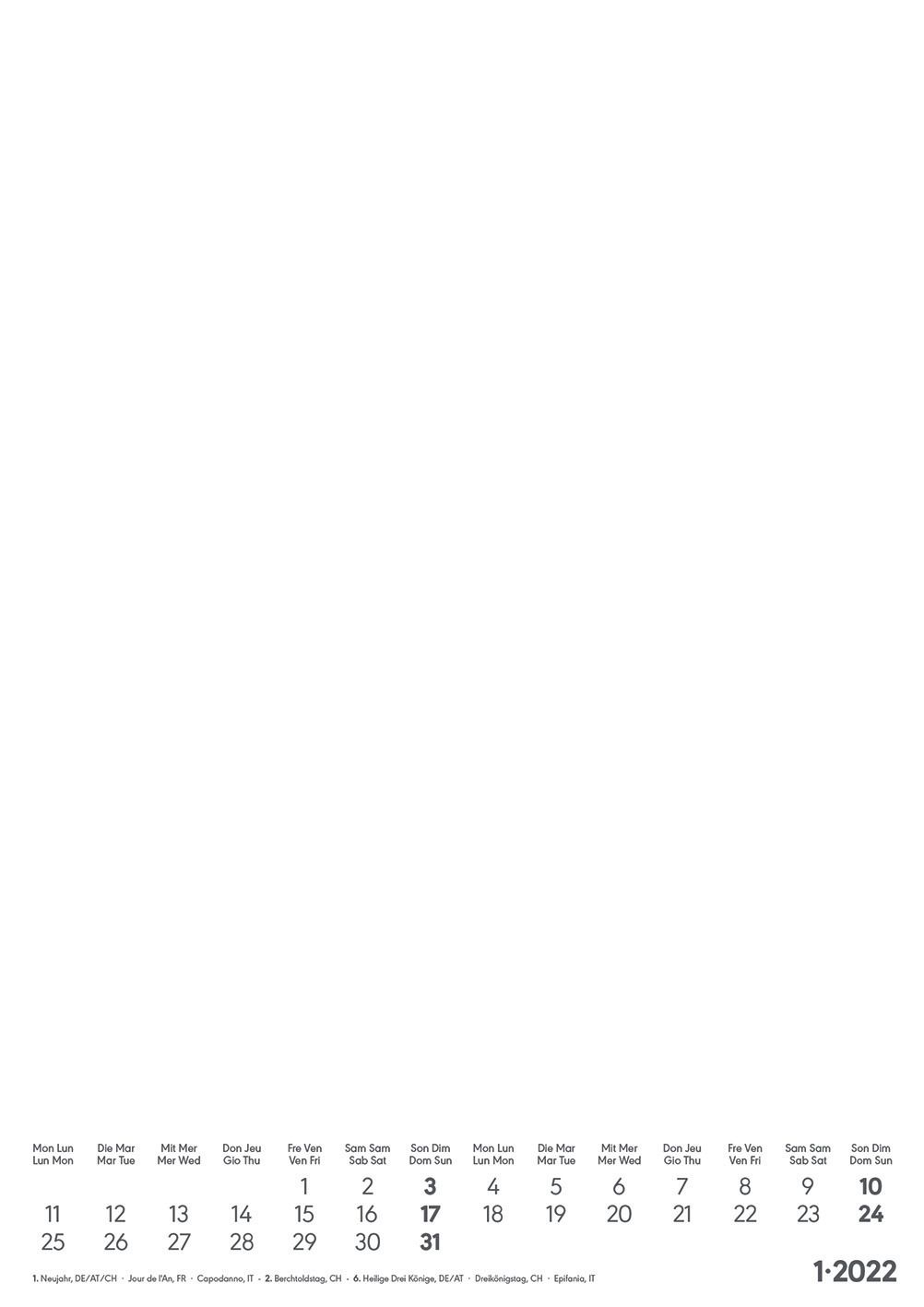 Hochwertiger Bastelkalender, gedruckt auf Papier aus nachhaltiger Forstwirtschaft Hergestellt in Deutschland Maße: 21 x 29,7 cm Gestaltbares Titelblatt Seiten aus echtem Bastelkarton Stabile Drahtbindung für eine bessere Aufhängung. 4-sprachiges Kalendarium (DE/FR/IT/GB) Feiertage (DE/AT/CH/FR/IT). Schwarze Schrift auf weißem Hintergrund Maximales Bildformat: 18 x 13 cm bzw. 13 x 18 cm Sie finden bei uns eine große Auswahl an Bastelkalendern in den unterschiedlichsten Formaten - da ist sicherlich auch für Sie der passende dabei! Lassen Sie Ihrer Kreativität freien Lauf und gestalten Sie den Foto-Bastelkalender Silber (A4, datiert) ganz persönlich nach Ihrem eigenen Geschmack und Ihren eigenen Wünschen. Dabei spielt es keine Rolle, ob Sie den Kalender mit eigenen Fotos, Stickern oder Zeichnungen gestalten - alles ist erlaubt! Letztlich wird es ein ganz individuelles Produkt werden. Der Kalender verfügt ebenfalls über eine stabile Drahtbindung, eine Aufhängung für die Wandbefestigung, ein frei gestaltbares Titelblatt, Informationen zu Ferienterminen und ein übersichtliches Kalendarium. Das dekorative Deckblatt bietet dank des Passepartouts zudem die Möglichkeit, einem ganz besonders schönen Bild das Hauptaugenmerk zu schenken. Der Foto-Bastelkalender weiß im A4-Format ist die perfekte Geschenkidee - bereiten Sie jemandem mit einem selbstgestalteten Kalender eine große Freude. Das Team der Neumann Verlage wünscht Ihnen viel Freude mit unseren Kalendern!