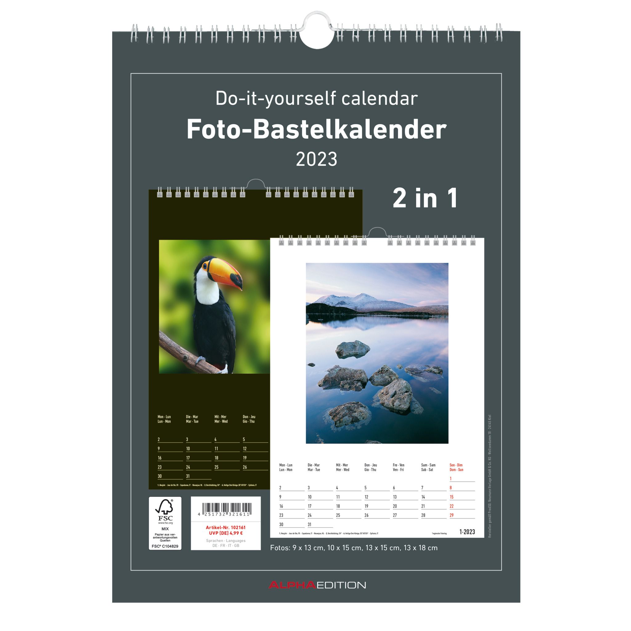 Hochwertiger Bastelkalender, gedruckt auf Papier aus nachhaltiger Forstwirtschaft. Hergestellt in Deutschland Maße: 21 x 29,7 cm. Mit gestaltbarem Titelblatt. Beidseitig verwendbar: Hintergrundfarbe wahlweise Schwarz oder Weiß. Rot eingefärbte Sonntage. Praktische Spiralbindung. 4-sprachiges Kalendarium (DE/FR/IT/GB) Feiertage (DE/AT/CH/FR/IT). Jeden Tag Platz für kurze Notizen. Maximales Bildformat: 18 x 13 cm bzw. 13 x 18 cm. Sie finden bei uns eine große Auswahl an Bastelkalendern in den unterschiedlichsten Formaten - da ist sicherlich auch für Sie der passende dabei!Lassen Sie Ihrer Kreativität freien Lauf und gestalten Sie den Foto-Bastelkalender 2 in 1 (A4, datiert) ganz persönlich nach Ihrem eigenen Geschmack und Ihren eigenen Wünschen. Dabei spielt keine Rolle, ob Sie den Kalender mit eigenen Fotos, Stickern oder Zeichnungen gestalten - alles ist erlaubt! Letztlich wird es ein ganz individuelles Produkt werden. Der Kalender verfügt über eine stabile Drahtbindung, eine Aufhängung für die Wandbefestigung, ein frei gestaltbares Titelblatt. Zudem liefert der Bastelkalender Ihnen auch Informationen zu Ferienterminen und ein übersichtliches Kalendarium. Dabei können Sie wahlweise die weiße oder die schwarze Seite des "2 in 1" Kalenders benutzten. Der Foto-Bastelkalender im A4 Format ist die perfekte Geschenkidee - bereiten Sie jemandem mit einem selbstgestalteten Kalender eine große Freude. Das Team der Neumann Verlage wünscht Ihnen viel Freude mit unseren Kalendern!"