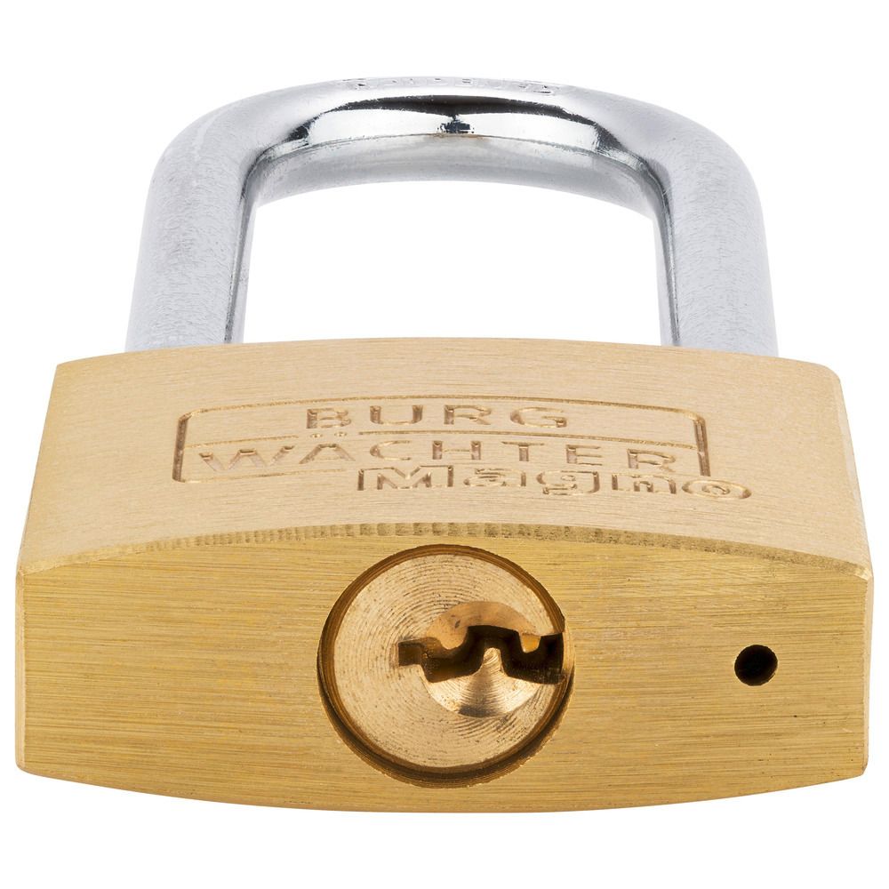 Das BURG-WÄCHTER Vorhangschloss 400 E Magno mit kompaktem Messingkorpus. Der Export-Schlager - das bewährte Allround-Talent: Mit Messingkorpus, gehärtet und verchromt oder als Edelstahl-Variante, mit Edelstahlbügel ist es vielseitig einsetzbar. 400 E Magno − mit kompaktem Messingkorpus. Gehärtet und verchromt. Doppelt verriegelt ab Größe 30 mm. Innenteile nicht-rostend. Hohe Zerreißfestigkeit. Hohe Anzahl verschiedener Schließungen. Gleichschließend (Lagerware) ohne Aufpreis.as Schloss trotzt über lange Zeit Wind und Wetter. Dafür sorgen die rostresistenten Innenteile vom Magno. So ist stets eine korrekte Schließung des Zylinders möglich. Apropos Schließung: Das Vorhängeschloss Magno gibt es in einer hohen Anzahl unterschiedlicher Schließungen. Damit nicht durch Zufall ein anderer Schlüssel in Ihr Schloss passt. Wer mehrere Magno Vorhängeschlösser im Einsatz hat, der sollte die gleichschließende Variante wählen. Denn so öffnen Sie alle Schlösser ganz komfortabel mit einem Schlüssel. Damit hat das Suchen und Probieren bis zum Finden des richtigen Schlüssels endlich ein Ende.