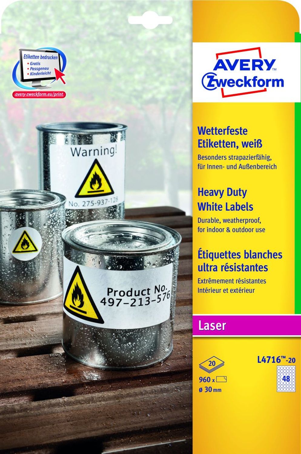 Weiterführende Links zu "AVERY ZWECKFORM Laseretiketten 30mm weiß L4716-20"