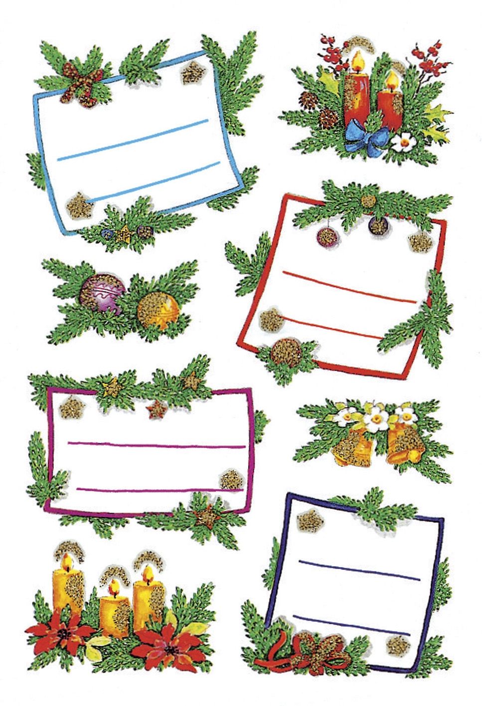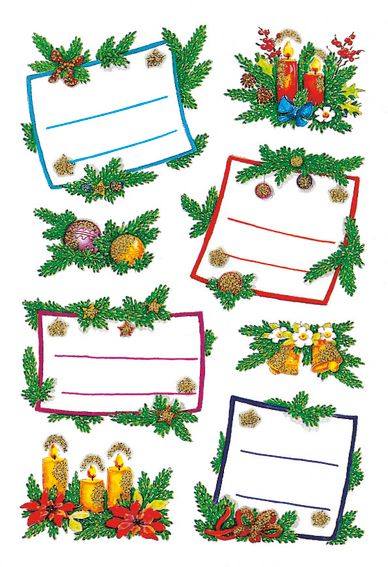Selbstklebende Schmucketiketten bunt bedruckt mit Weihnachtsmotiven. Zum Dekorieren von Geschenken, Karten und Briefen.