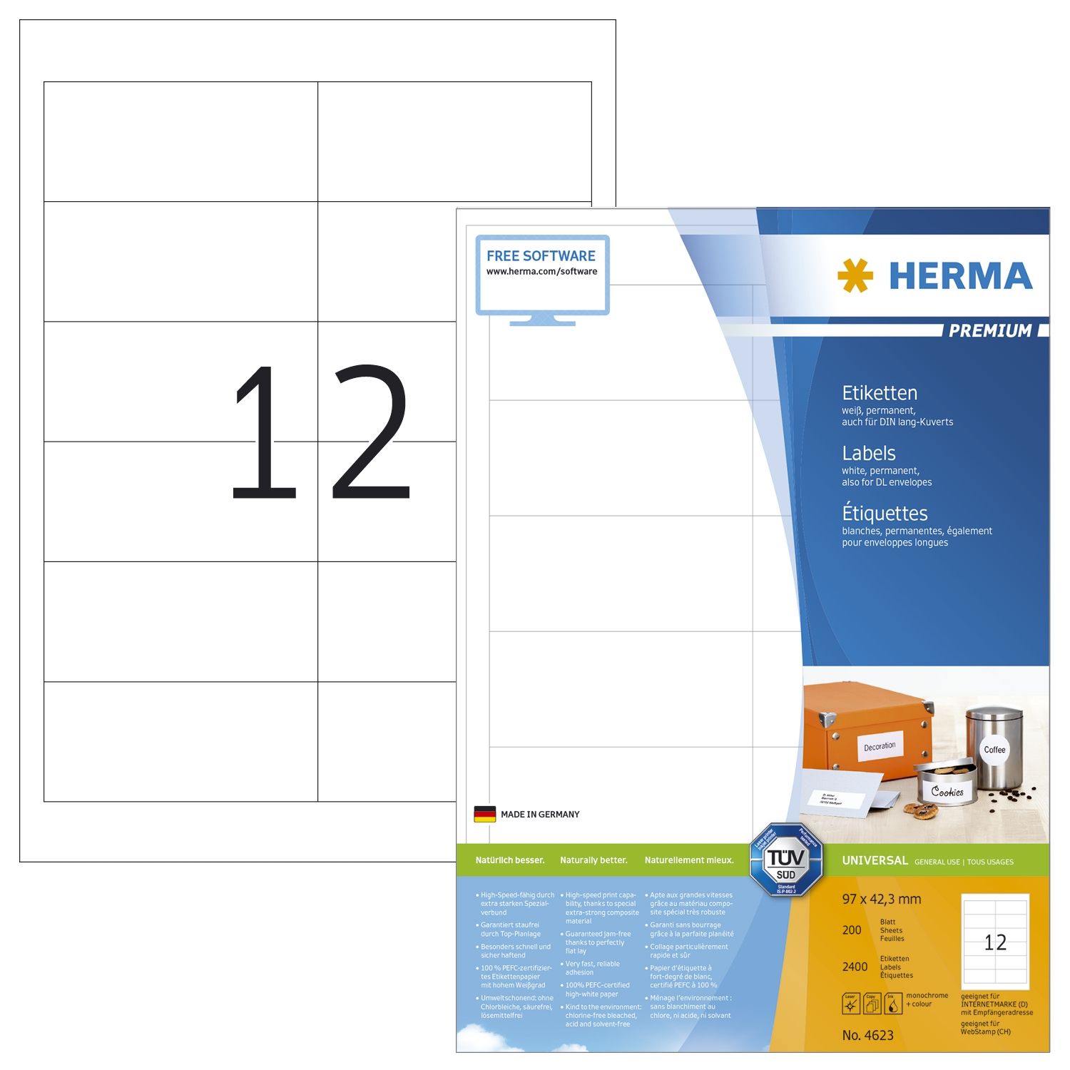 Weiterführende Links zu "HERMA Universaletiketten 96,5x42,3mm weiß 4623 2400 Stück permanend haftend"