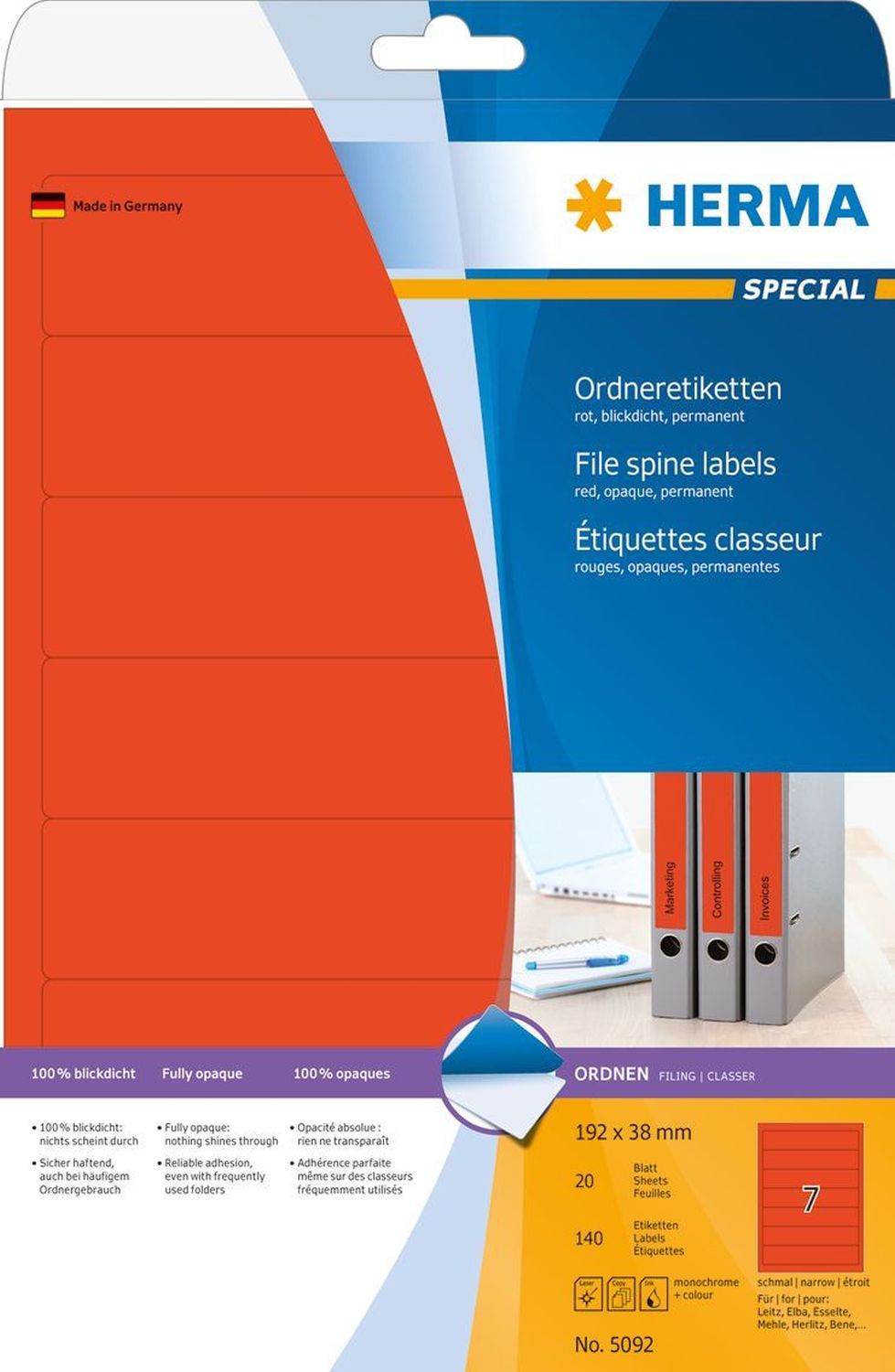 Produktinformationen "HERMA Universaletikett 192x38 rot 5092 f OrdnerBB"