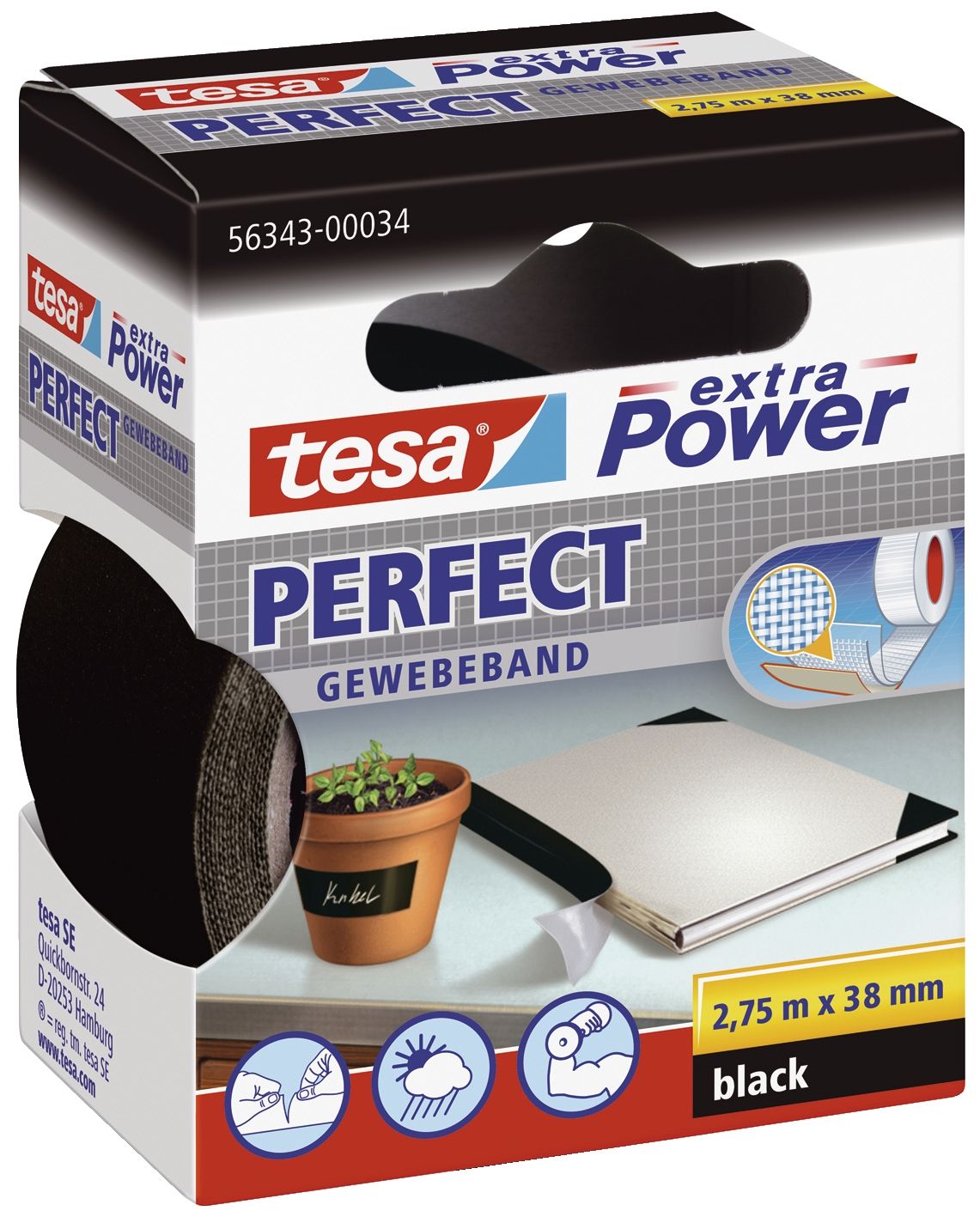 Gewebeklebeband tesa® extra Power Gewebeband. Einsatzbereich: Fixieren, Reparieren, Abdichten und Bündeln. Produktverwendung: auch für rauhe Untergründe geeignet. Bedruckbar. Wasserfest. Alterungsbeständig. UV-beständig. Power-Klebeband, Beschriftbar. Bandgröße (L x B): 2,75 m x 38 mm. Farbe: schwarz.
