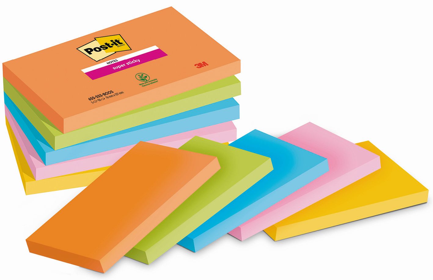 Die Haftnotizen in signalstarken Farben und mit der extra starken "Super Sticky" Haftkraft - haften stärker und länger überall wo sie gebraucht werden: auf rauen sowie vertikalen und schwierigen Oberflächen wie Monitor, Kühlschrank, Tür, Armaturenbrett. Ob als Gedankenstütze oder zum Strukturieren und Organisieren von Projekten - in Büro, Schule und Alltag sind sie nicht mehr wegzudenken. Bringen zusätzlich Farben in den Büroalltag und fallen noch mehr auf. Durch die bunten Farben ist eine Farbcodierung möglich und geben allen Notizen eine persönliche Note. Rückstandsfrei wieder ablösbar und haften immer wieder. PEFC zertifiziert. Block je 90 Blatt. Format: 76x127mm. Farbkollektion: "Boost" (vitalorange, limonengrün, paradiseblau, tropicalpink, ultragelb).