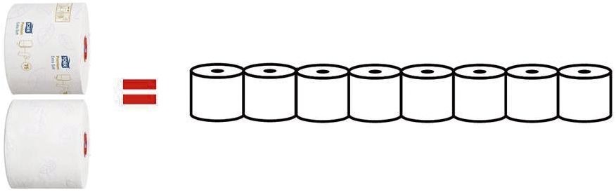 Compact Toilettenpapier für Tork T6 System. Einzigartige, graue bzw. lilafarbene Lorbeerblattprägung, optimale Lagenhaftung und Weichheit, unperforiert und hochweiß. Ideale Lösung für Waschräume mit mittleren bis hohen Besucherzahlen, wo hoher Wert auf Design und Hygiene gelegt wird.