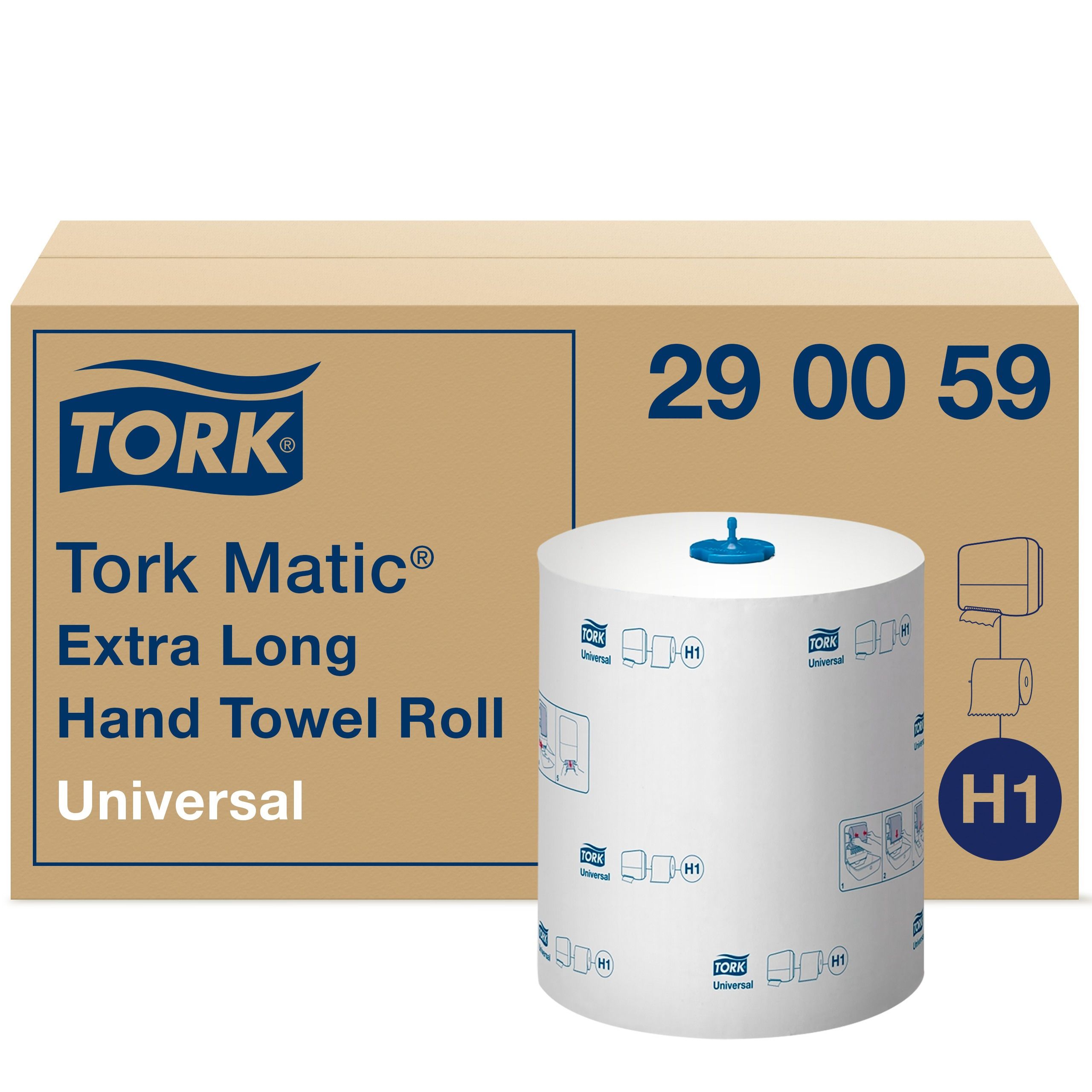 Die Tork® Matic® extra langen Rollenhandtücher haben eine sehr hohe Kapazität und sind daher genau das Richtige für stark frequentierte Waschräume wie in Schulen oder auf Flughäfen. Die Rollen eignen sich für den Tork® Matic® Spender für Rollenhandtücher, der für Waschräume mit hoher Besucherfrequenz entworfen wurde und besonders wartungsarm ist. - System H1, Handtuch Rolle perforiert auf 21 x 24,5 cm Handtuchstücke, 280 lfm lang, ca. 1143 Abrisse pro Rolle, Advanced Qualität, Lebensmitteltauglich, lebensmittel geeignet, 1-lagig, gute Saugfähigkeit und Nassfestigkeit, Rollendurchmesser ca. 19cm, Rollenbreite 21cm, passend für Spendersystem H1 z.B. 551100, 551108, 551000, 551008, 459500.