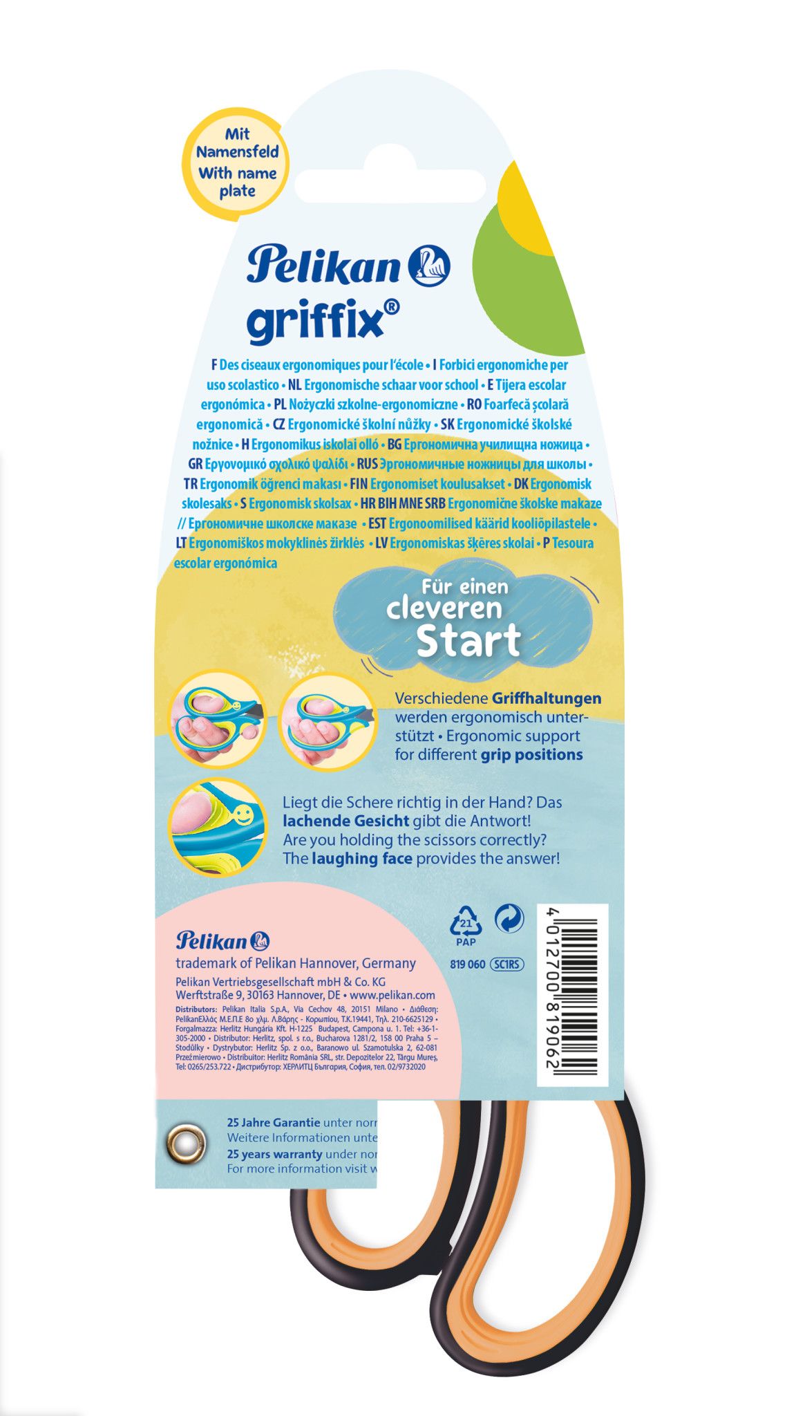 Eltern und Lehrer wünschen sich Qualitätsscheren in der Schule, die sich durch lange Haltbarkeit und Robustheit auszeichnen. Ergonomie und leichtes Handling für die Kinder stehen außerdem im Vordergrund. Mit der Einführung der griffix® Schulschere hat Pelikan ein hochwertiges Qualitäts- produkt auf den Markt gebracht, das all diese Eigenschaften in sich vereint. Die perfekte Ergänzung für das griffix® Schulscherensortiment ist die neue griffix Schulschere mit spitzer Klingenform. Beide Scherenvarianten sind im Schulunterricht relevant und fördern insbesondere die Feinmotorik der Kinder. Damit unterstützen die griffix® Schulscheren das beliebte griffix®-Schreiblernsystem für Grundschulkinder. Weil der Anfang wichtig ist!
