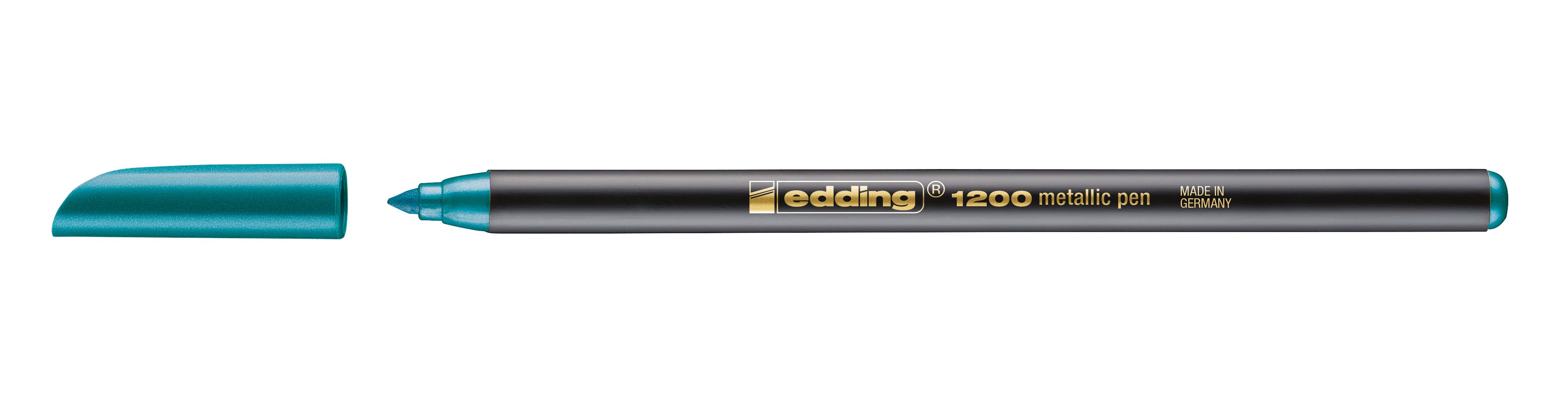 Fasermaler 1200 metallic colourpen · Deckende Metallicfarben ideal zum Schreiben, malen und Gestalten auf hellem und dunklem Papier · Kappe ab und loslegen: deckender Fasermaler mit Metallictinte im Filtersystem · Rundspitze, Spitze druckgesichert · Pigmentierte Tinte auf Wasserbasis, auswaschbar, Nicht veränderbar, Wassergelöste Tinte mit hoher Lichtbeständigkeit · Weichgleitende Faserspitze · Material des Schaftes: Kunststoff · Farbe des Schaftes: schwarz · Strichstärke: 1 - 3 mm · Schreibfarbe: metallic grün