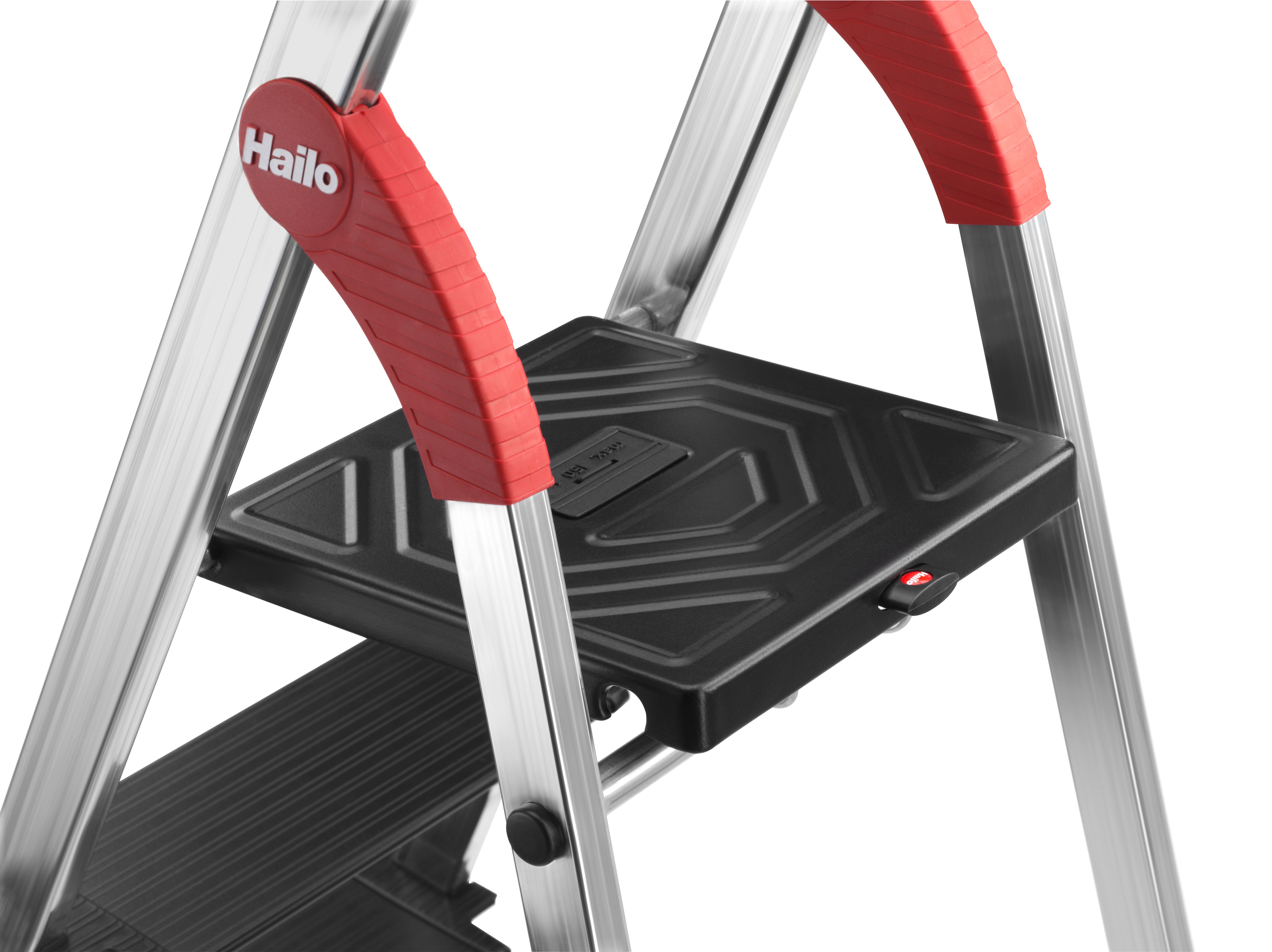 Hailo L100 TopLine. Die Alu-Sicherheits-Stehleiter mit Multifunktions-Schale, Sicherheits-Haltebügel und Plattformverriegelung bietet Sicherheit im XXL-Format: 13 cm extra tiefe Stufen. Geeignet für HAILO EasyClix Wechselfüße (optionales Zubehör) Plattformverriegelung für sicheres Ver- und Entriegeln Schwarze XXL-Alu-Stufen mit Anti-Rutsch-Riffelung und extra tiefer Standfläche Verzinkte, schwarze Stahl-Plattform mit Anti-Rutsch-Riffelung Ausziehbarer Sicherheits-Haltebügel zum Festhalten beim Arbeiten auf der Plattform Multifunktions-Ablageschale zur Ablage von Werkzeugen, Farbdosen oder Kleinteilen Eimerschlaufe mit Klick-Schnellverschluss zur sicheren Befestigung von Eimern, Staubsaugern oder Kabeltrommeln 1 Universalhaken als Halterung für Heckenscheren, Putzmittel oder Malerrollen 1 Stabhalter als Halterung für Besen oder Pflücker. Sichere, HighTech-vernietete Holm-Stufenverbindung. Rutschsicherer Steckfuß. Belastbar bis 150 kg.