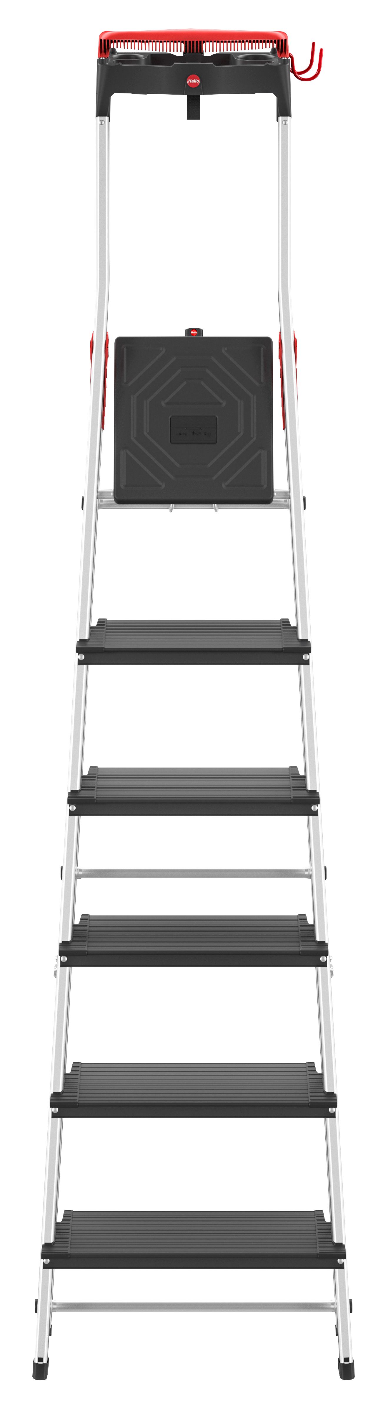 Hailo L100 TopLine. Die Alu-Sicherheits-Stehleiter mit Multifunktions-Schale, Sicherheits-Haltebügel und Plattformverriegelung bietet Sicherheit im XXL-Format: 13 cm extra tiefe Stufen. Geeignet für HAILO EasyClix Wechselfüße (optionales Zubehör) Plattformverriegelung für sicheres Ver- und Entriegeln Schwarze XXL-Alu-Stufen mit Anti-Rutsch-Riffelung und extra tiefer Standfläche Verzinkte, schwarze Stahl-Plattform mit Anti-Rutsch-Riffelung Ausziehbarer Sicherheits-Haltebügel zum Festhalten beim Arbeiten auf der Plattform Multifunktions-Ablageschale zur Ablage von Werkzeugen, Farbdosen oder Kleinteilen Eimerschlaufe mit Klick-Schnellverschluss zur sicheren Befestigung von Eimern, Staubsaugern oder Kabeltrommeln 1 Universalhaken als Halterung für Heckenscheren, Putzmittel oder Malerrollen 1 Stabhalter als Halterung für Besen oder Pflücker. Sichere, HighTech-vernietete Holm-Stufenverbindung. Rutschsicherer Steckfuß. Belastbar bis 150 kg.