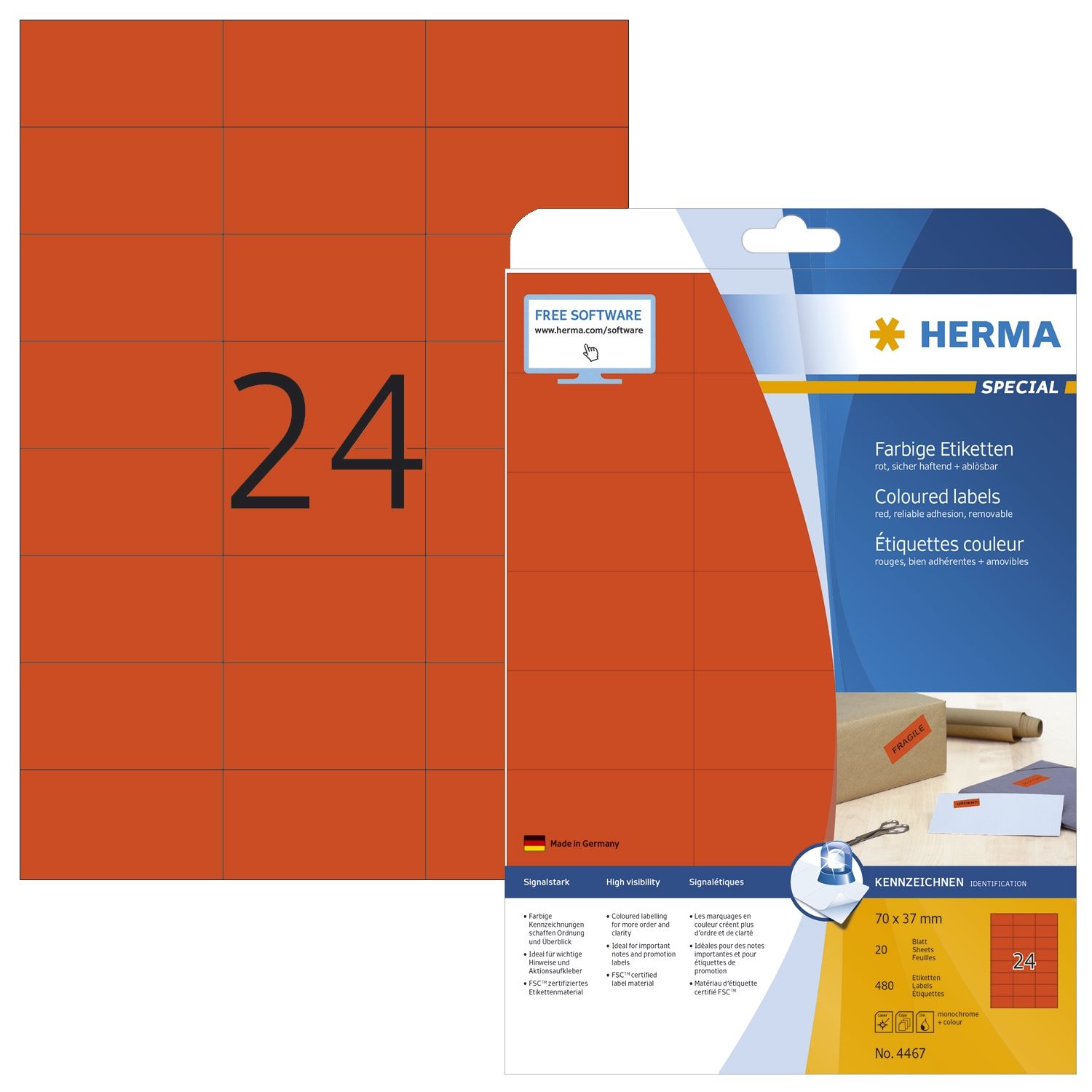 Produktinformationen "HERMA Universaletiketten 70x37mm rot 4467 SuperPrint 480 Stück ablösbar"