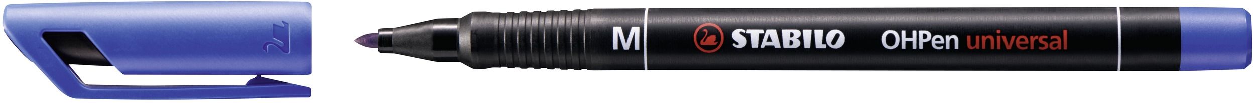 STABILO® OHPen universal. Folienstift für alle, die ihre Ideen vor anderen Menschen erläutern möchten. Schreibt auf fast allen glatten Oberflächen. Schwarzer Schaft für permanente Tinte, grauer Schaft für wasserlösliche Tinte. Rutschfeste Griffzone und praktischer Clip. Bis zu 72 Stunden Austrocknungsschutz ohne Kappe. Kappe am Stiftende aufsteckbar.