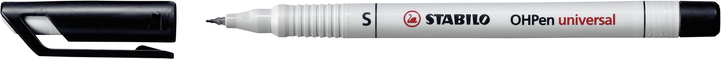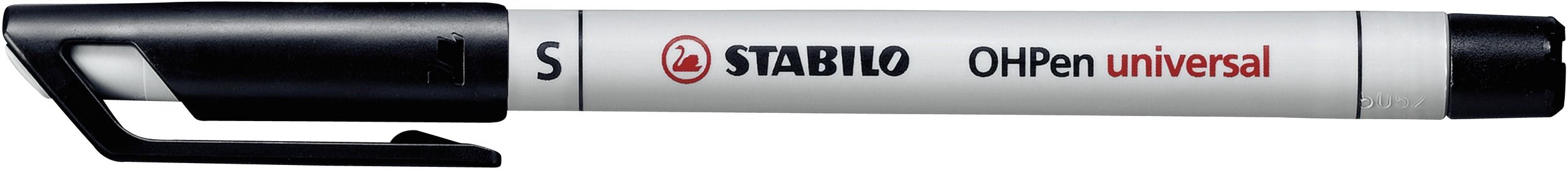 STABILO® OHPen universal. Folienstift für alle, die ihre Ideen vor anderen Menschen erläutern möchten. Schreibt auf fast allen glatten Oberflächen. Schwarzer Schaft für permanente Tinte, grauer Schaft für wasserlösliche Tinte. Rutschfeste Griffzone und praktischer Clip. Bis zu 72 Stunden Austrocknungsschutz ohne Kappe. Kappe am Stiftende aufsteckbar.