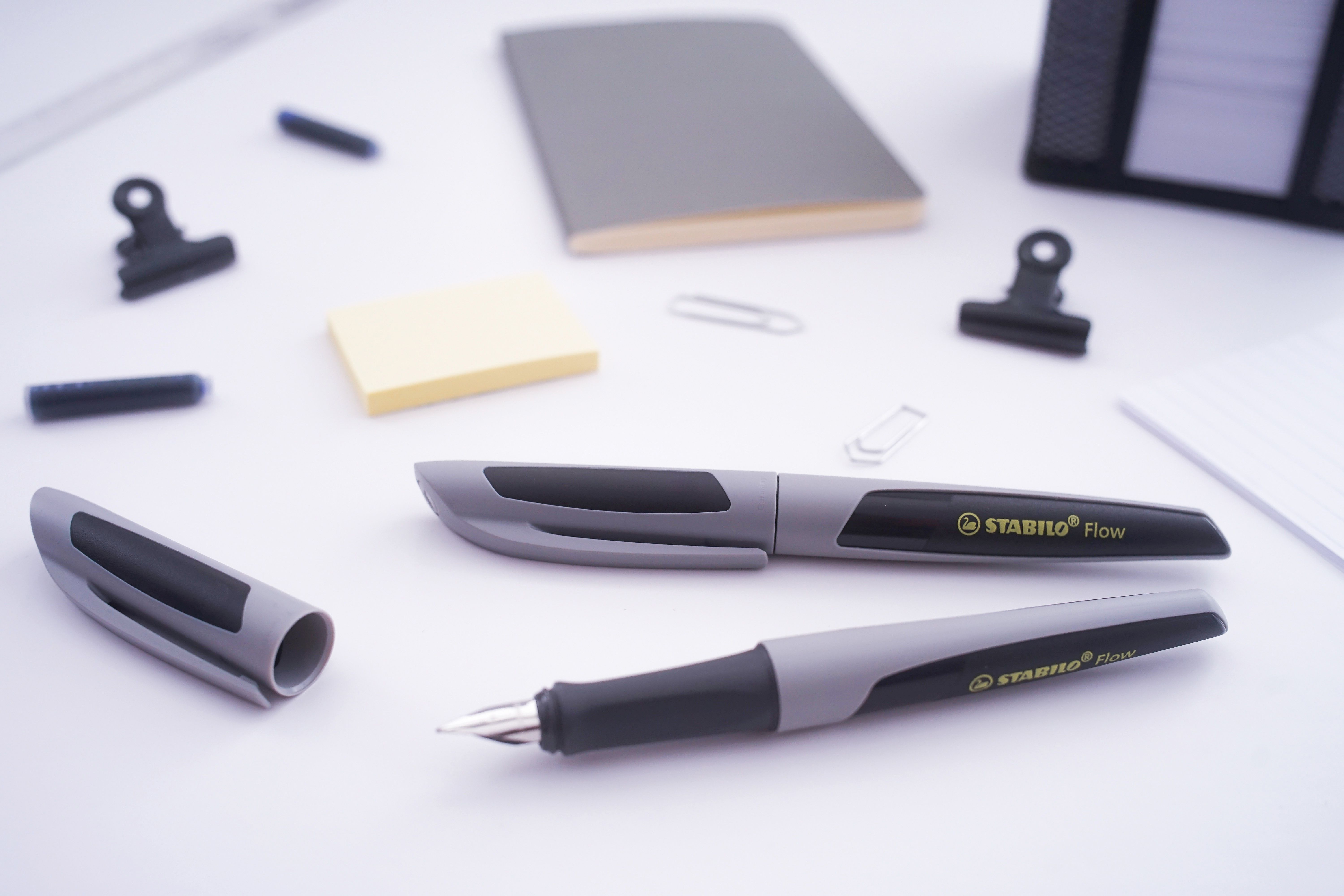 Der STABILO® Flow verbindet trendstarkes Farbdesign mit bewährter Qualität. Die drei Editionen SPORTY, COSMETIC und ACTIVE bringen neuen Schreib-Spaß in Schule, Uni und Büro. Da ist für jeden Geschmack etwas dabei. Durch die ergonomische Griffzone sind komfortables Handling und sicherer Halt garantiert – egal ob ungeübter Füller-Nutzer oder Profi. Die hochwertige Edelstahlfeder mit Iridiumkorn bringt die Handschrift besonders schön zur Geltung. Die gefederte Kappe bietet maximalen Auslaufschutz und schützt vor Tintenklecksen. Ebenso praktisch: Es passen sämtliche Standardpatronen.