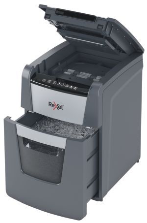 98% Zeitersparnis. Die AutoFeed-Technologie ermöglicht einfaches Schreddern von ganzen Papierstapeln und spart so 98 % Zeit im Vergleich zu manuellem Schreddern. Schreddert Heft- und Büroklammern/Kreditkarten und Anti-Papierstau-Technologie. Für kleinere Büros/Home Office: 100 Blatt, 34L Auffangvolumen.