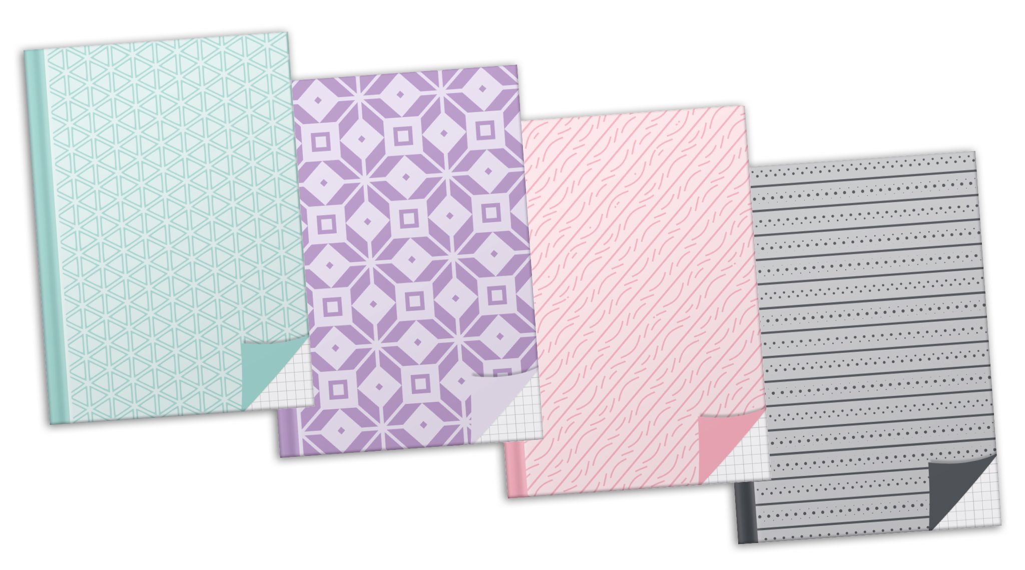 Sortierung Kladden/Notizbücher, "Pastell", DIN A5. Ausführung Papier: Naturpapier, 70 g/m². Ausstattung: keine, Hardcover. 4 Kladden/Notizbücher mit unterschiedlichen Motiven: "Mint" Art.Nr. 46801, "Berry" Art.Nr. 46802, "Rosé" Art.Nr. 46803, "Grey" Art.Nr. 46804. Papierformat: DIN A5. Lineatur/Lineatur-Nr.: kariert, 5. Anzahl der Blätter: 96 Blatt. Farbe des Einbandes: sortiert.