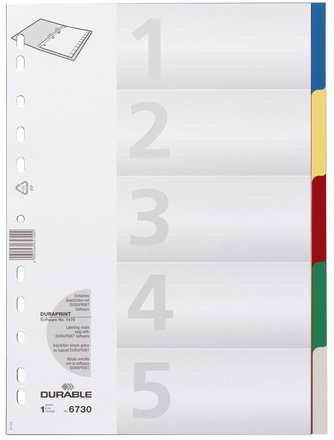 Produktinformationen "DURABLE Register Plastik blanko A4 5tlg. 6730 27 farbige Taben"