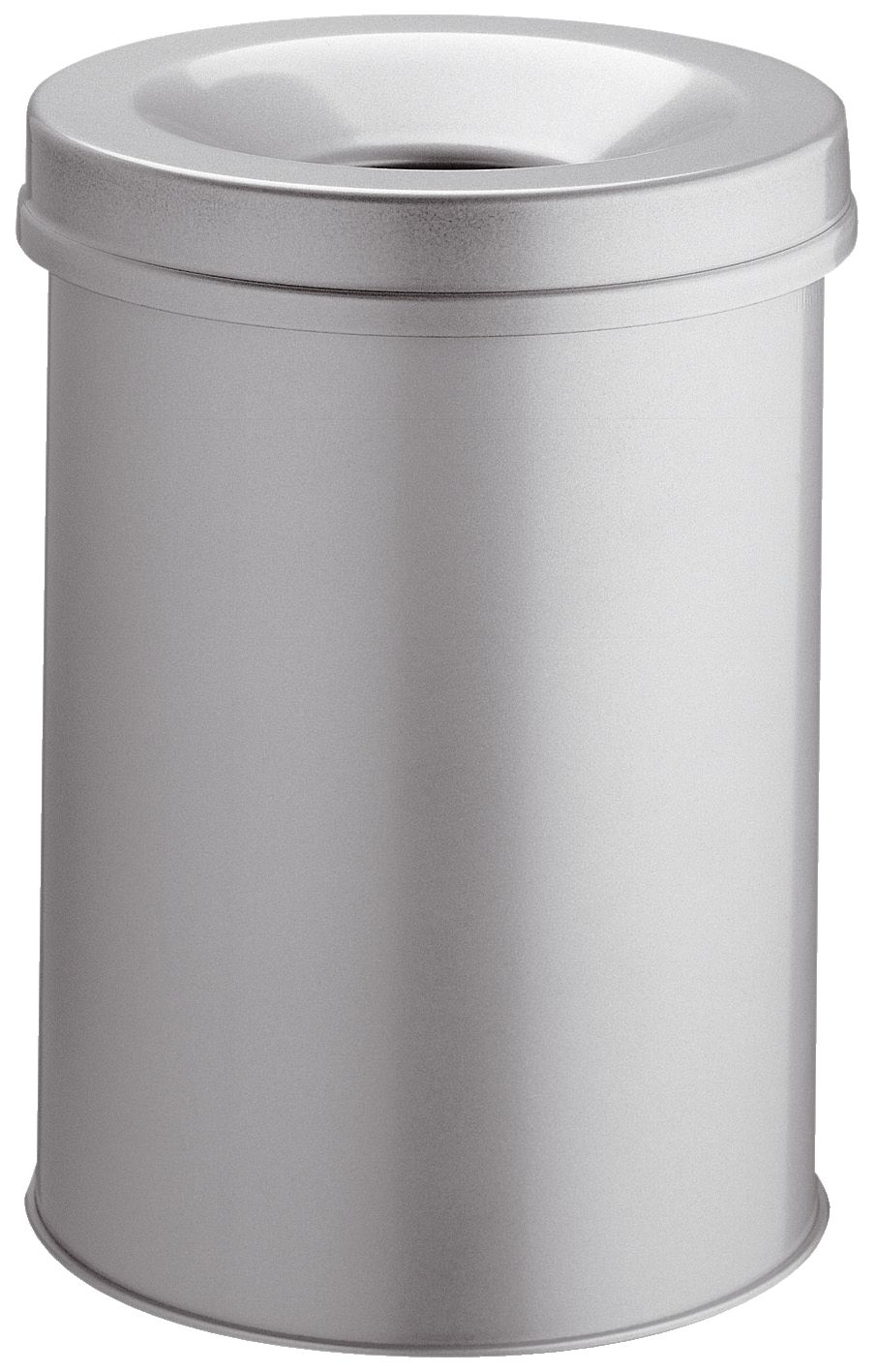 Papierkorb SAFE rund 15. Material und Form: Stahl mit kratzfester Epoxidharzbeschichtung, rund. Anzahl der Sortierfächer: 1. Ausstattung: Deckel vorhanden. Der selbstlöschende Deckel unterbricht die Sauerstoffzufuhr im Papierkorb und erstickt die Flammen rechtzeitig. Sicherheitsausstattung: flammsicher, Flammenlöschkopf. Durchmesser min/max: 260 mm. Höhe: 357 mm. Volumen: 15 l. Farbe: grau.